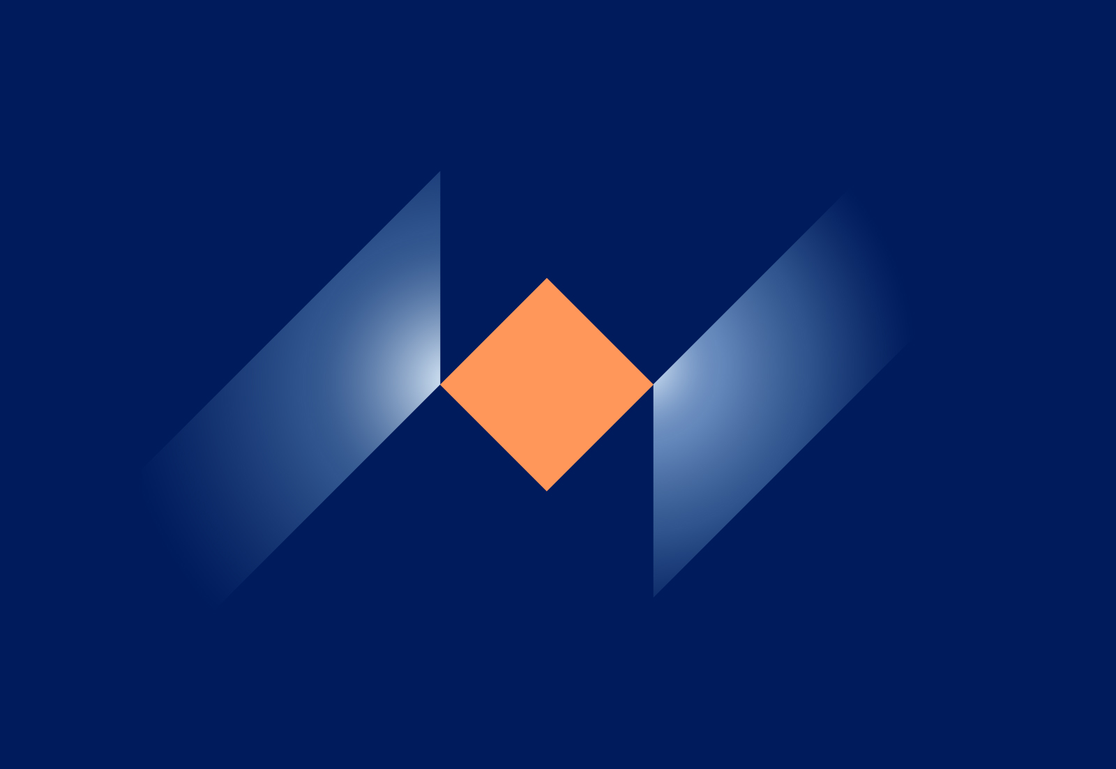 À partir da interação do losango e as formas do nosso símbolo, criamos um grafismo que comunica a amplificação que proporcionamos, com o cliente como centro.